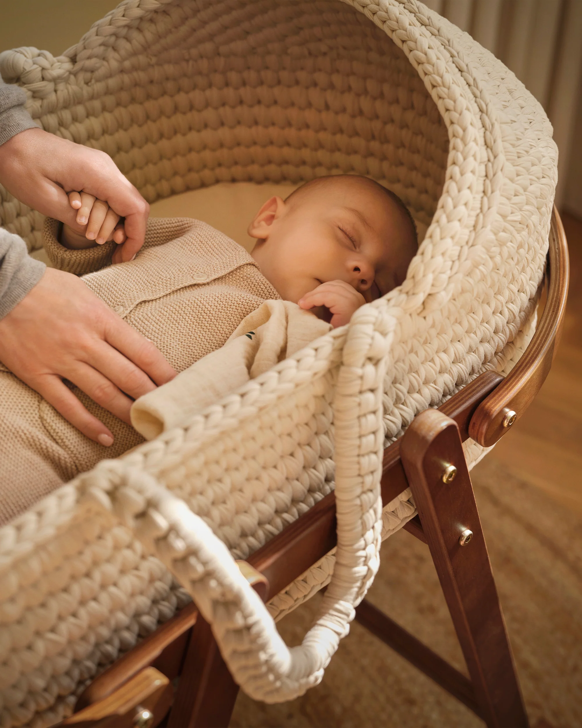The perfect first bed for your newborn. Carefully handmade, with a secure flat base and a softly rocking stand, combining safety, comfort, and timeless Scandinavian design.